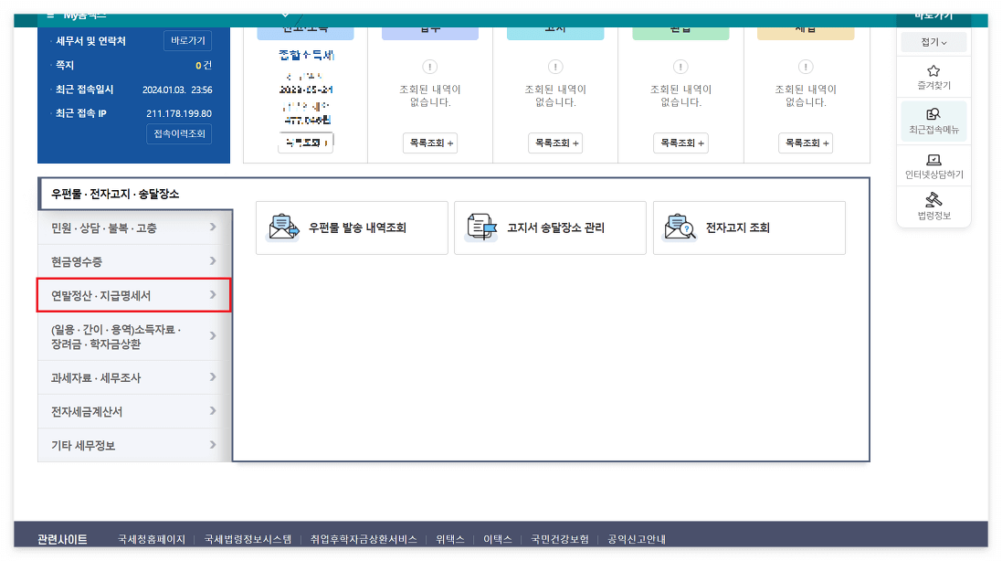 급여명세서 및 원천징수영수증 온라인 발급 방법