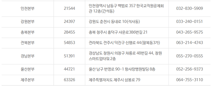 신청할 수 있는 각 지역별 교통안전공단 전화번호는 아래에 있습니다.